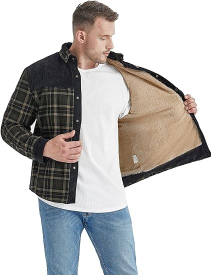 Haellun Men's Long Sleeve Sherpa Lined Shirt Jacket Flannel Plaid Fleece Coats