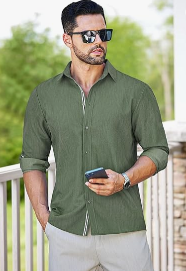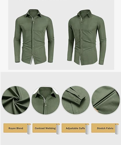 MAPICK Mens Casual Button Down Denim Shirts Long Sleeve Untucked Stretch Wrinkle-Free Dress Shirt